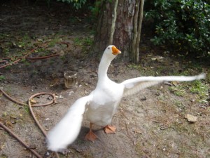 All too soon, Dad’s chair was empty. Years of diabetes proved too much for his heart, and his body wore out. Now it was Gator’s job to accompany my mother, who was feeling particularly lonely, from place to place. He faithfully followed her from one side of the house to the other, watching her, protecting her now that Dad could not. No one, not even the mailman, dared come between Gator Goose and my mother. With his hissing and flapping, he was prepared for a fight with anyone who might try.
