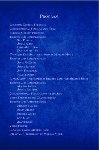 Thank you, from the bottom of my heart for your prayers and support as we honored Wyndham yesterday. I felt them. Attached is a link to his Celebration of Life service. I am also including a photo of the program, which unfortunately ended up in Kentucky instead of Massachusetts.